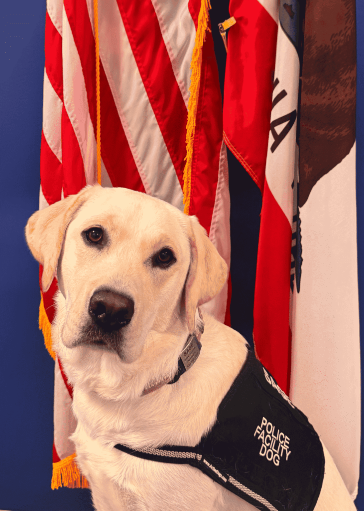 Salinas, CA — The Salinas Police Department introduced its newest team member this week: Sage, a 1-year-old yellow Labrador who will serve as the department’s official wellness dog.